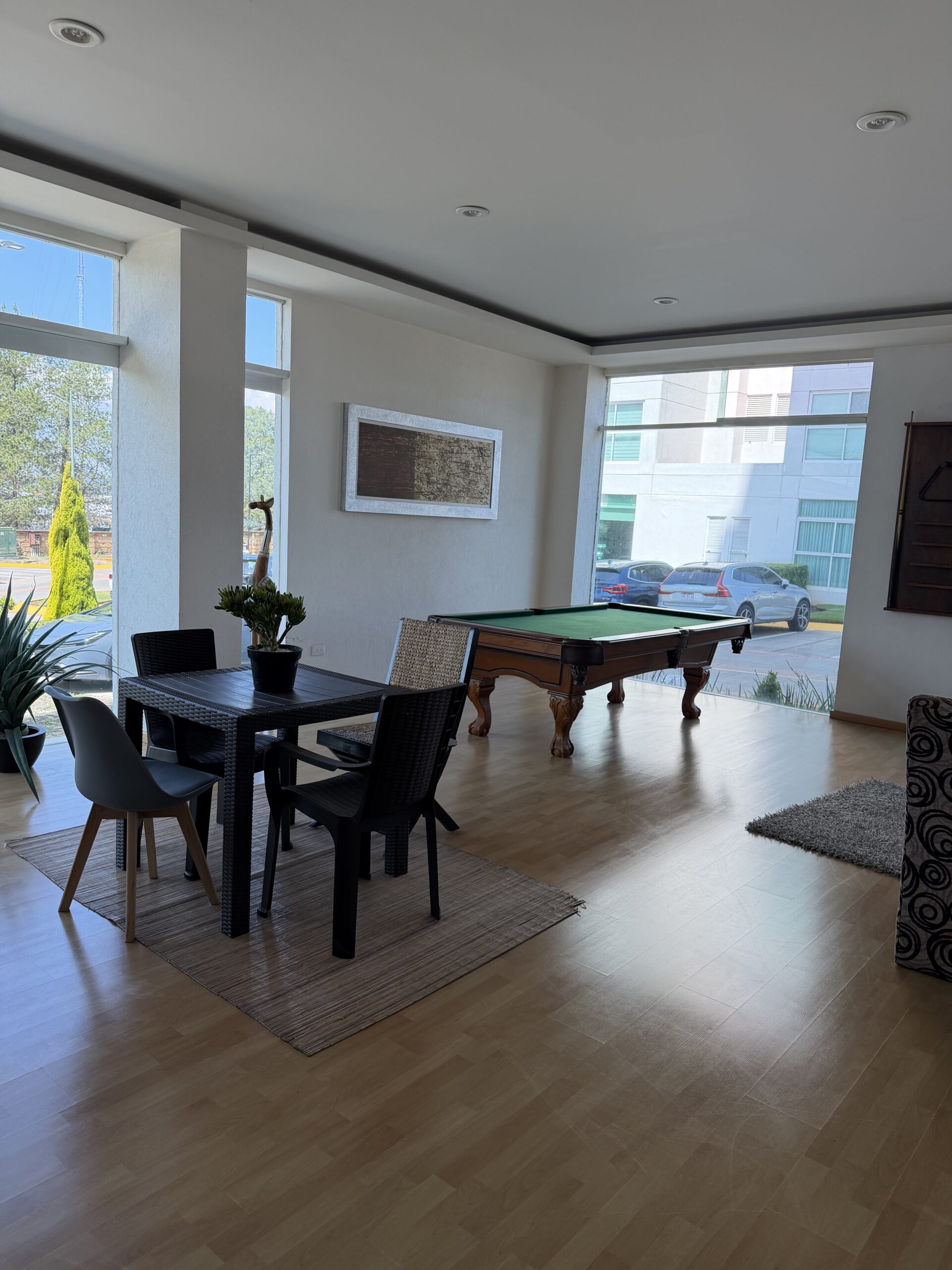 Amenidades: alberca, jardines amplios, área común techada, gym, salón de usos múltiples con mesa de billar, ambiente tranquilo y seguro.