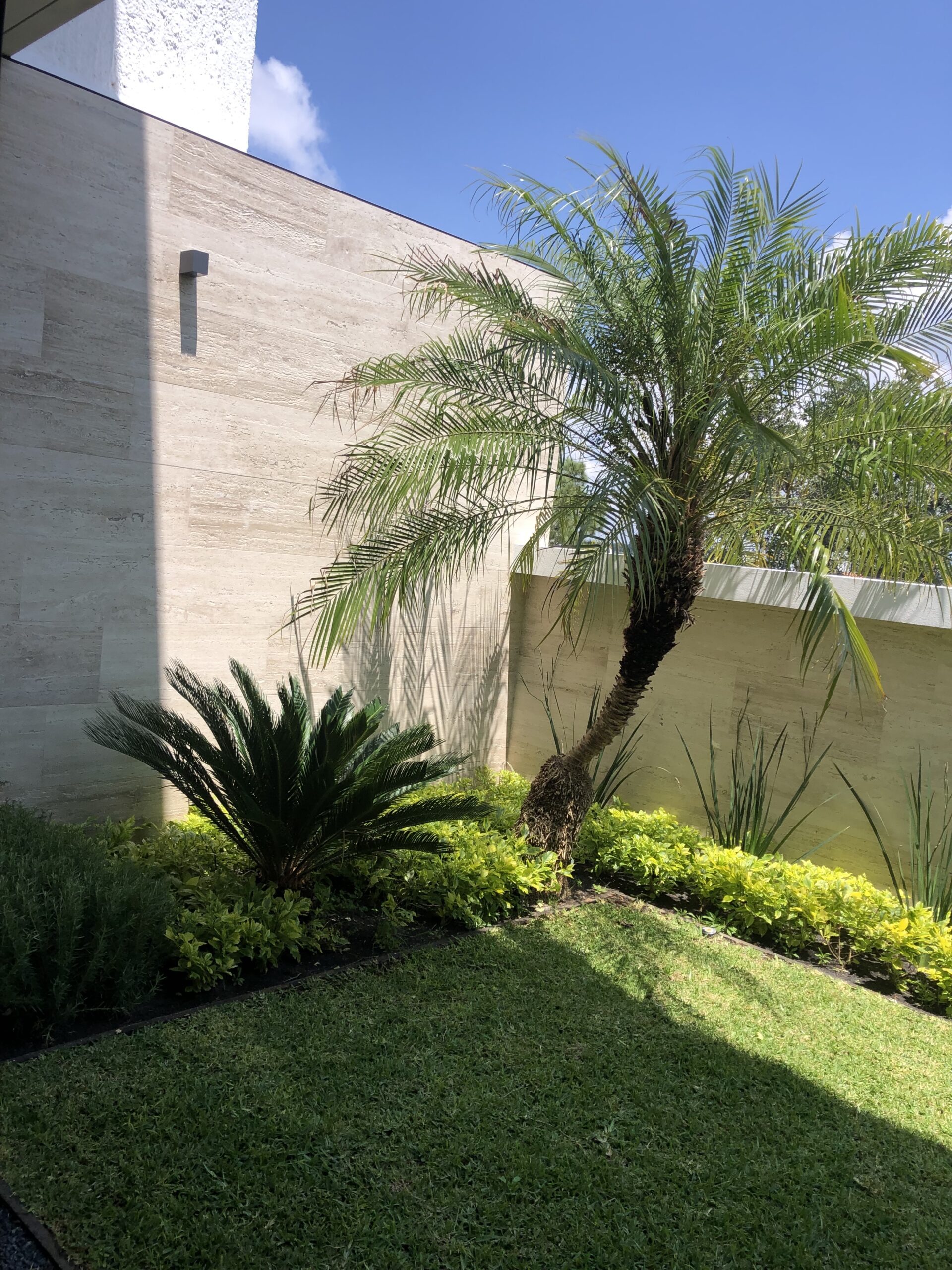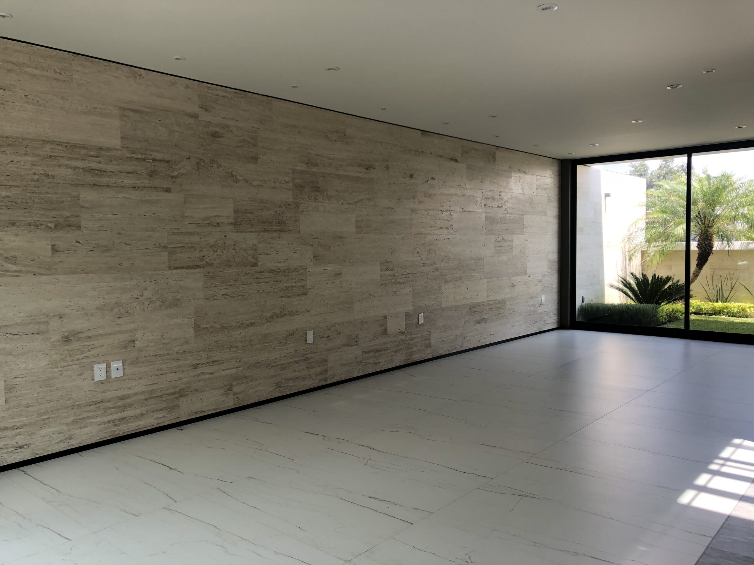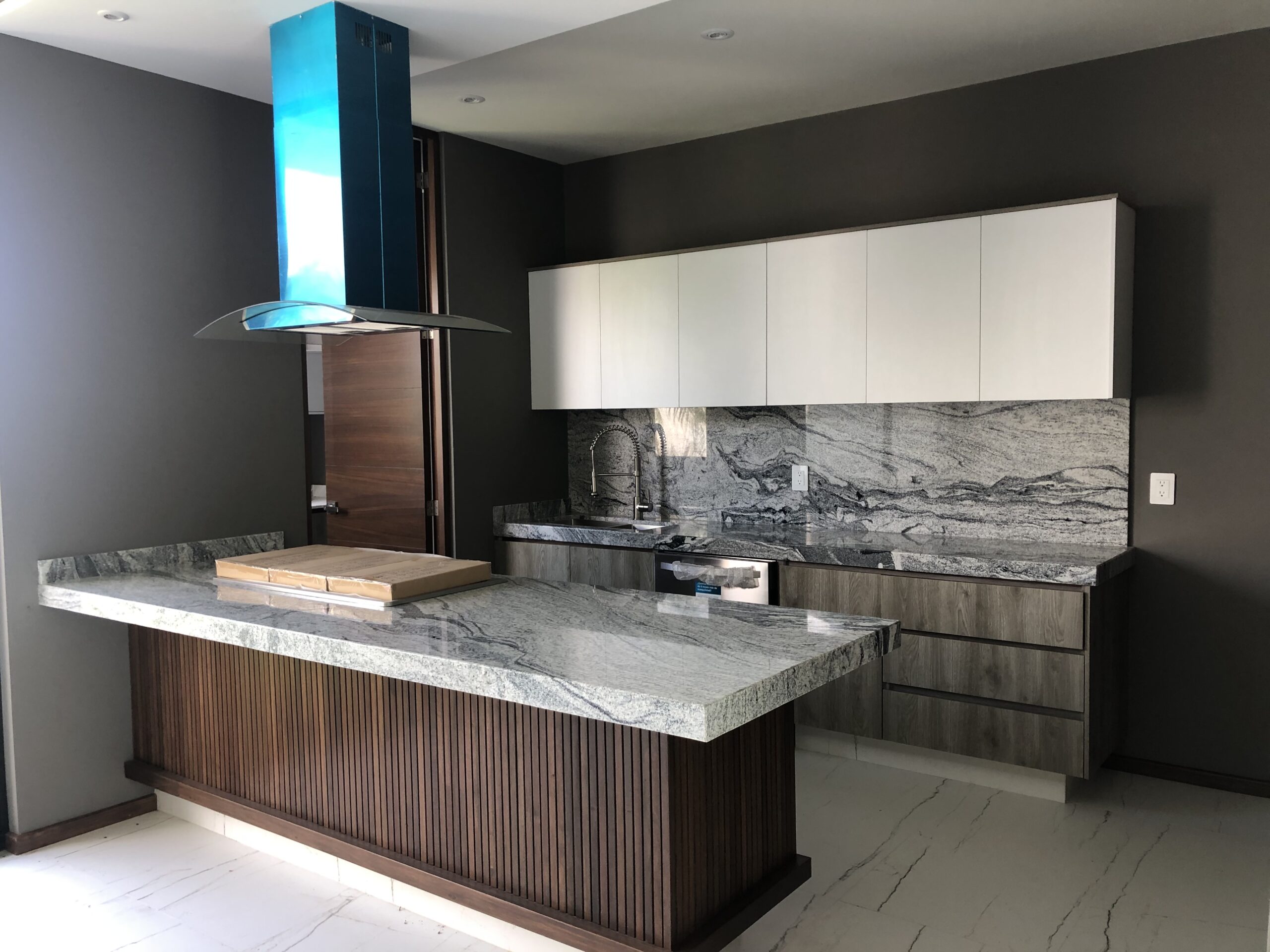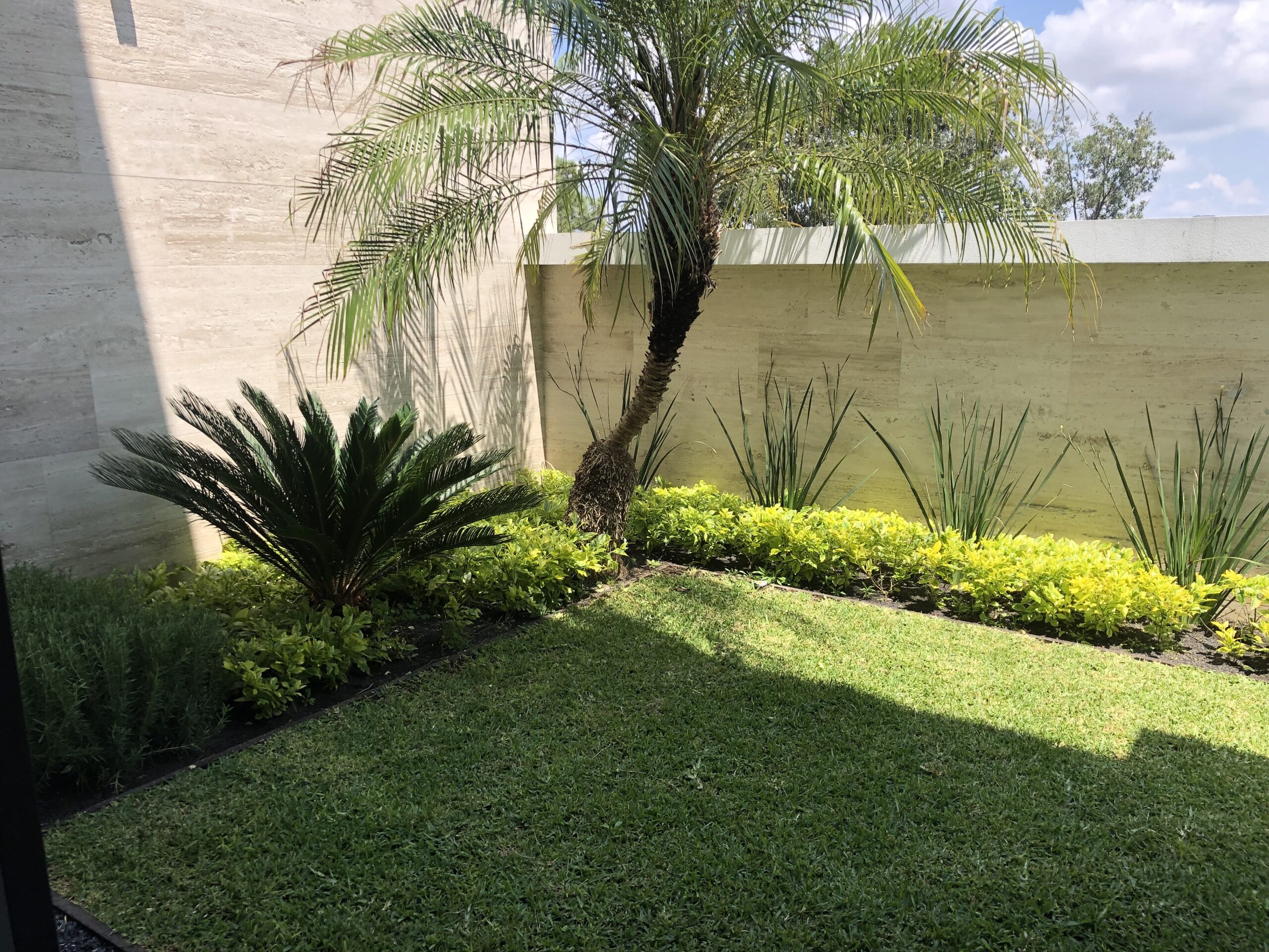 Planta baja: Sala, comedor, cocina equipada con cubierta de granito, doble tarja, horno de gas, horno de microondas, lavavajillas; jardinera interior, medio baño, jardín, área de lavado, cochera para dos autos.